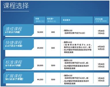 选择与您的学术水平和英语水平相匹配的课程。如英语要求不满足,请参加强化学术英语课程