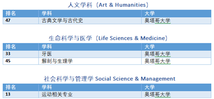奥塔哥大学的解剖学、考古学、发展研究、教育、生理学、牙科和体育相关科目的研究名列世界前50(2018年QS排行榜)。大学得到国际认证的商学院是亚太地区教育和研究领域的领军者,艺术与人文学科名列世界前100。