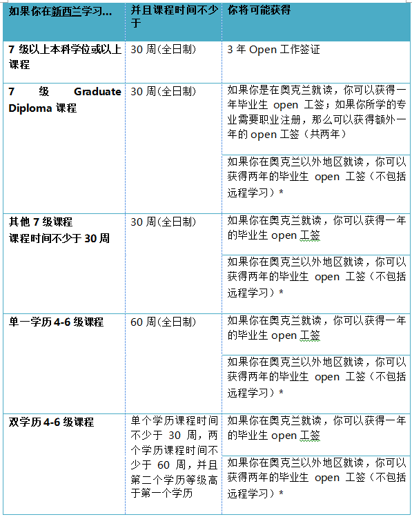- 在新西兰全日制学习一个至少60周的新西兰NZQF(新西兰资历框架)4-6级的学历;