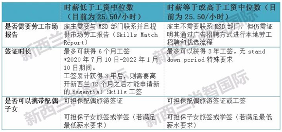 申请人有新西兰公司提供一个全职的工作邀请(Job Offer)、有相关的学历或工作经验,并能证明没有新西兰本地人能胜任此工作。从2020年7月27日开始,此类工作签证的期限根据薪资水平决定。时薪达到或高于中位数的申请人,签证期限3年。时薪低于中位数的申请人,签证最长时限为6个月,每三年要进入一年的停工期(Stand-down period)。
