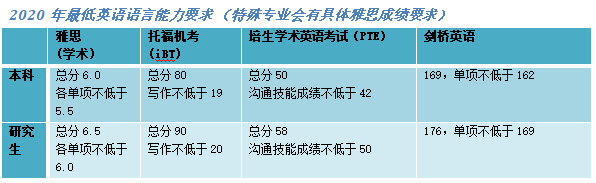 以下表格列出了进入大学的最低分数要求。但有些本科和研究生课程需要更高的入学条件。 详细要求请参考:http://www.massey.ac.nz/massey/international/study-with-massey/entry-requirements/specific-programme-requirements.cfm
