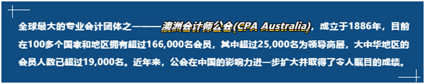 - 会计专业背景&有被CPA认可的相关工作经验,毕业后即有资格获得CPA正式会员CPA Full Membership;