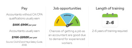 - 没有CA/CPA资格的会计师通常年薪:NZ$55,000- NZ$90,000