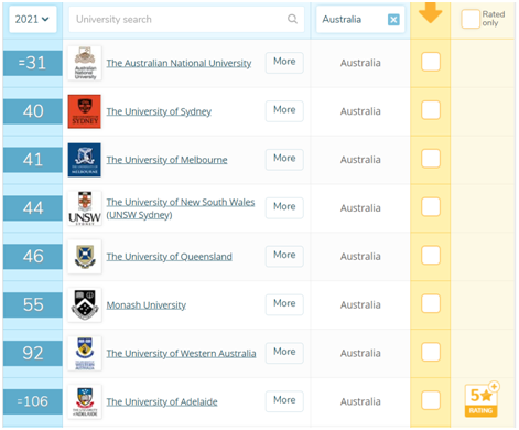 在最新2021QS世界大学综合排名第31位,连续17年蝉联全澳第一。